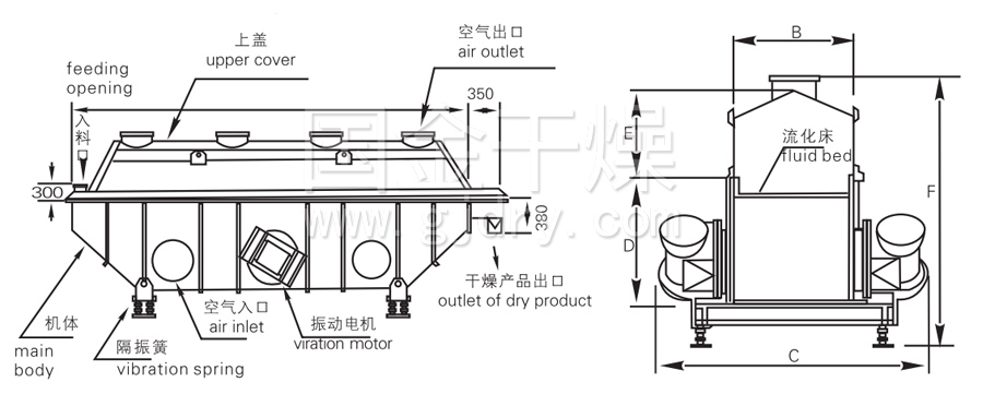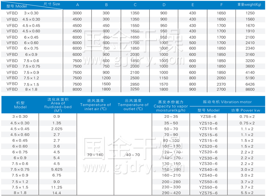 流態(tài)化穩(wěn)定,無死角和吹穿現(xiàn)象。床層開孔形式,及開孔率至關(guān)重要。終水份、產(chǎn)量可通過振幅及加料量來控制。