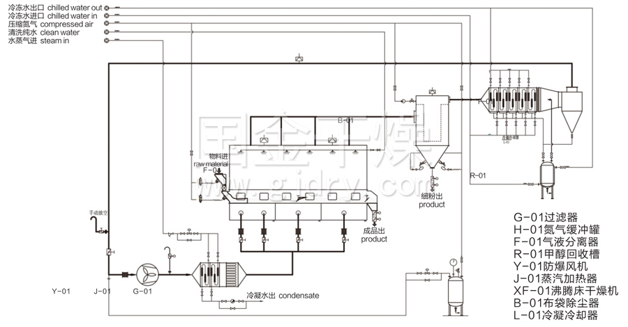 產(chǎn)品簡(jiǎn)介:工作原理以氮?dú)鉃閭鲗?dǎo)傳熱介質(zhì),實(shí)現(xiàn)對(duì)制藥、生化、化工、生物等技術(shù)領(lǐng)域含有機(jī)溶媒、溶劑物料的干燥生產(chǎn)與溶媒、溶劑的回收,具備安全生產(chǎn)、高效、低耗節(jié)能減排的實(shí)用性。干燥機(jī)內(nèi)的氣體在風(fēng)機(jī)的循環(huán)下,經(jīng)換熱器加熱,進(jìn)入沸騰式干燥機(jī),物料與熱空氣充分接觸換熱。待物…